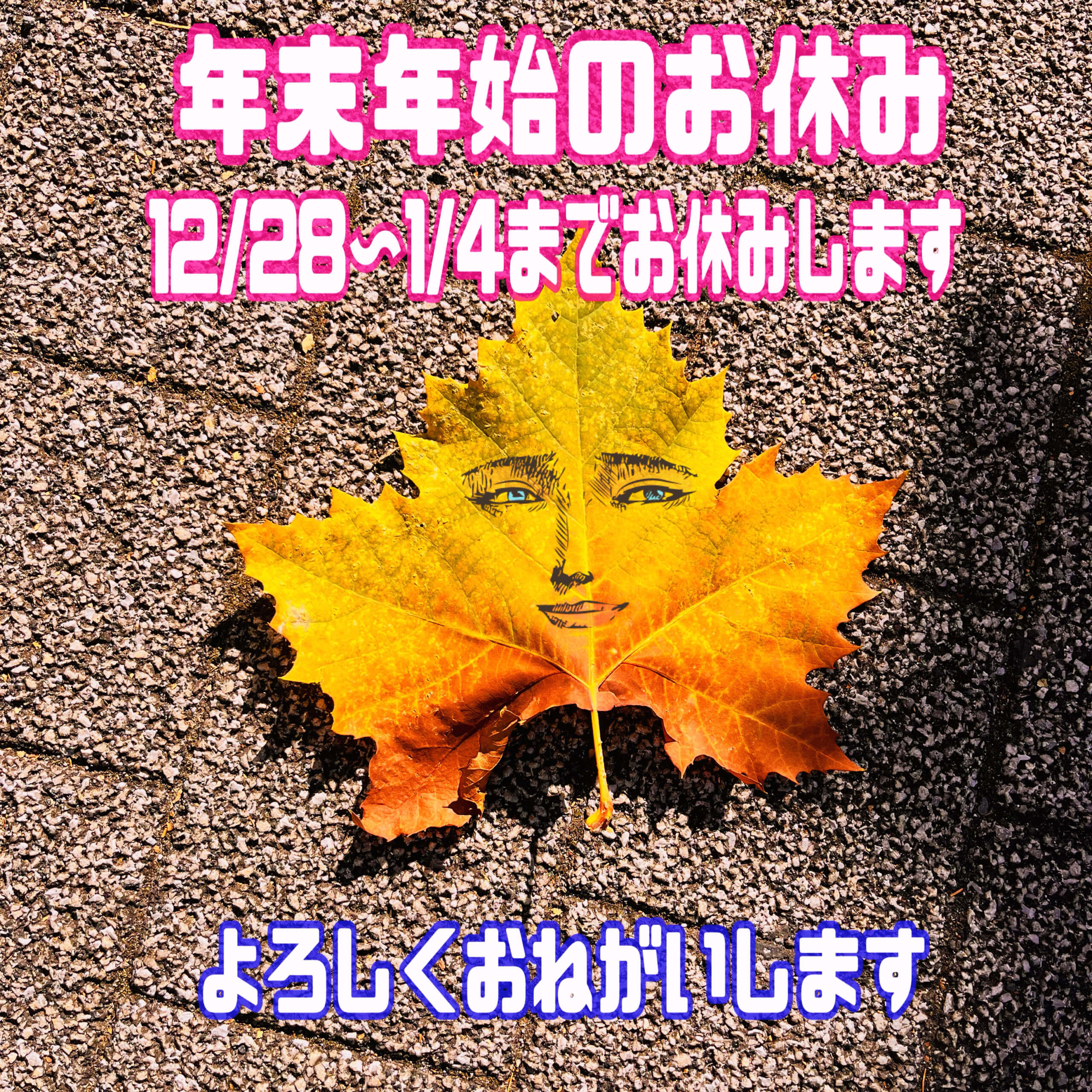 年末年始は12月28日〜1月4日までお休みします。